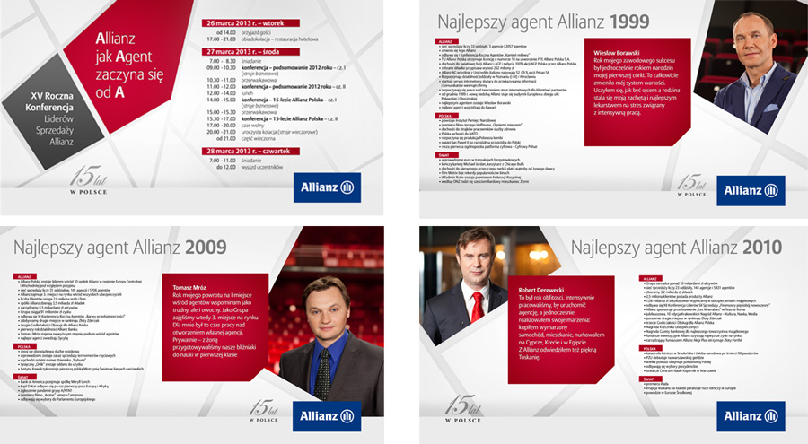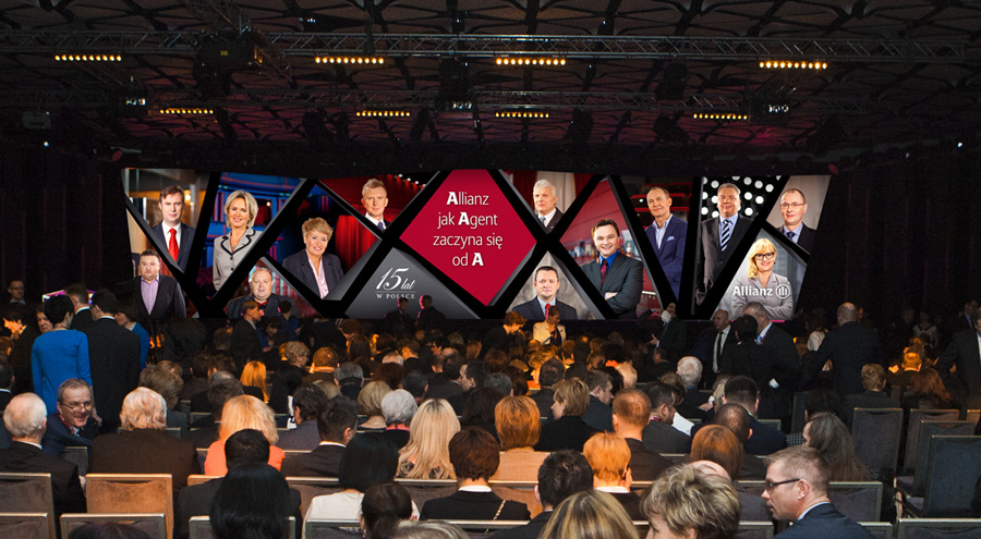 Przygotowanie key-visuala na potrzeby oprawy graficznej eventu na 15-lecie firmy Allianz w hotelu Narvil. Na podstawie niego opracowaliśmy wszystkie elementy wizualne potrzebne do konferencji: grafiki na scenę, film-czołówkę itp., a także oprawę muzyczną: motyw przewodni, muzyka tła.